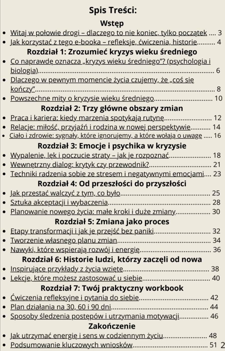 Ten e-book to jak kompas dla tych, którzy czują się zagubieni w połowie życia. Pomógł mi uporządkować myśli i przypomnieć, że nigdy nie jest za późno, żeby znaleźć własną drogę.